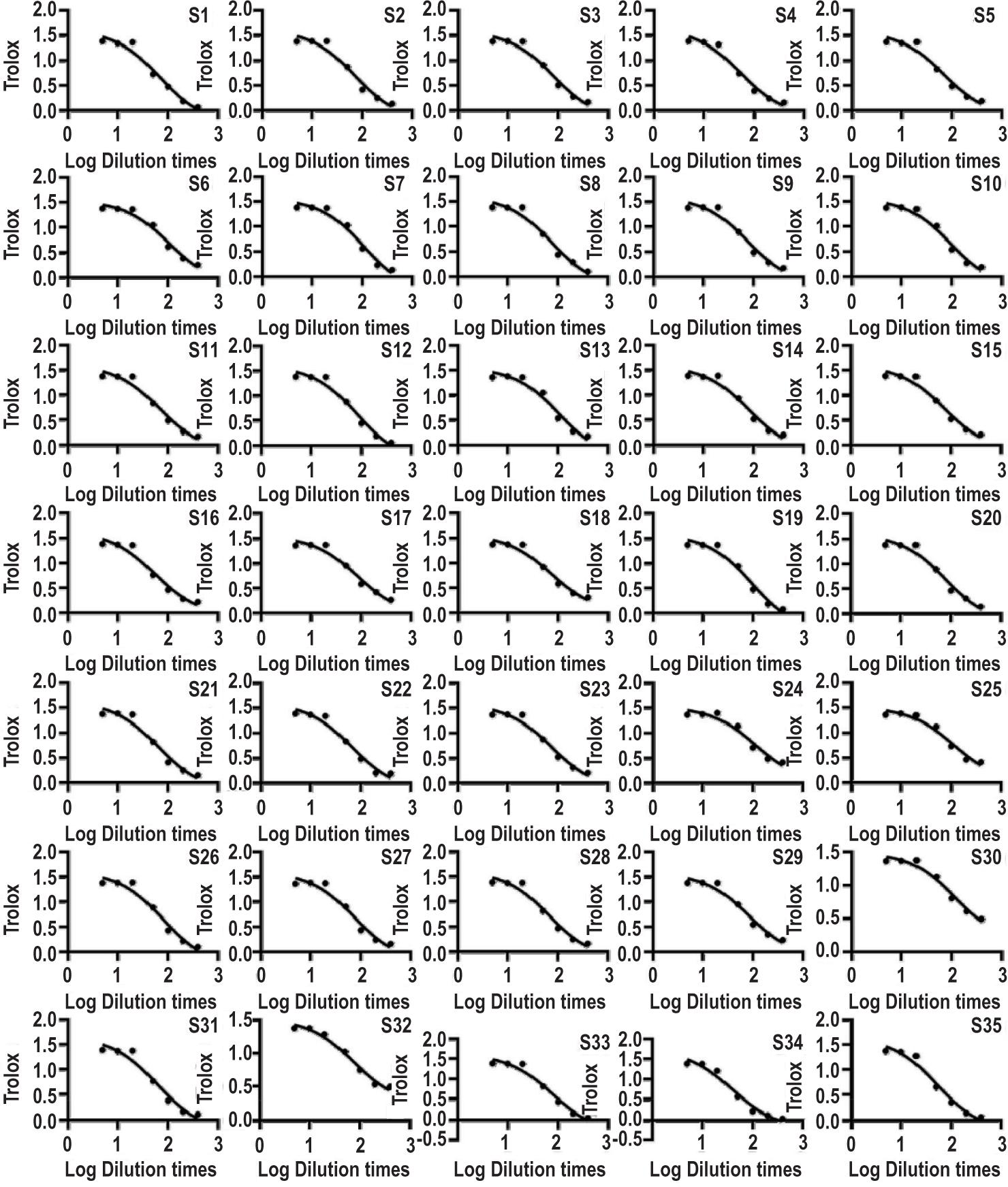 Figure 4. Determination of antioxidant activity of 35 batches of red wine.