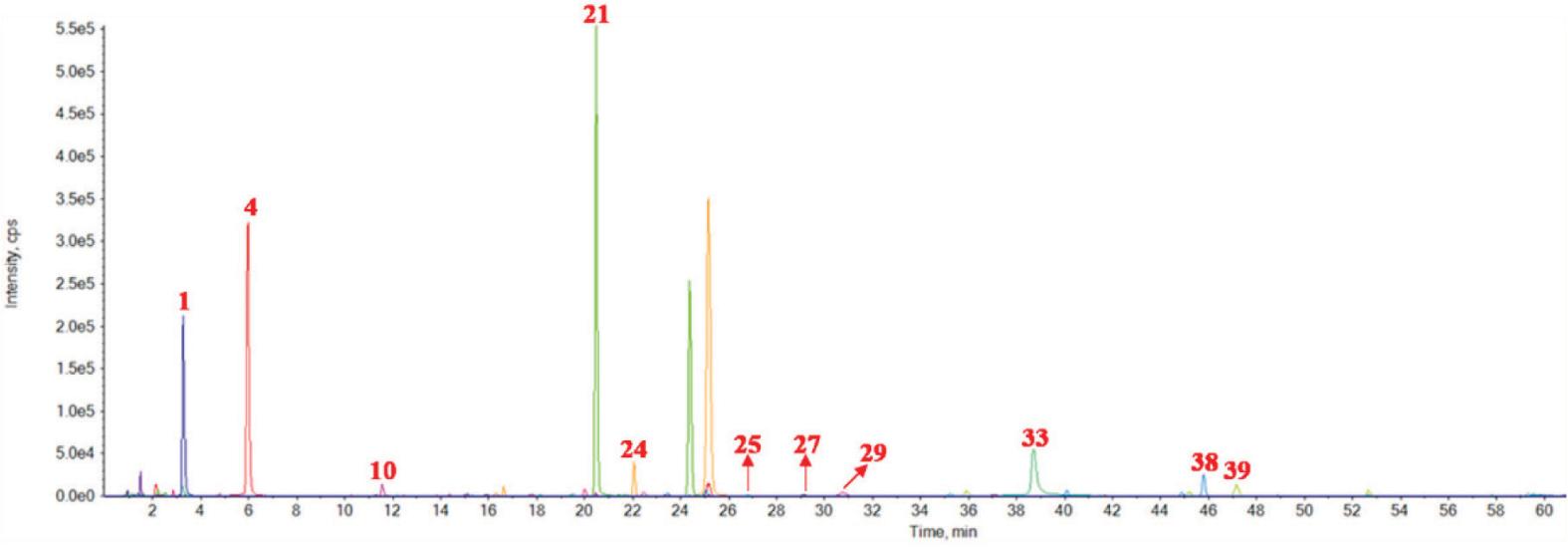 Figure 5. UFLC-Q-TOF/MS chromatography in a negative mode.