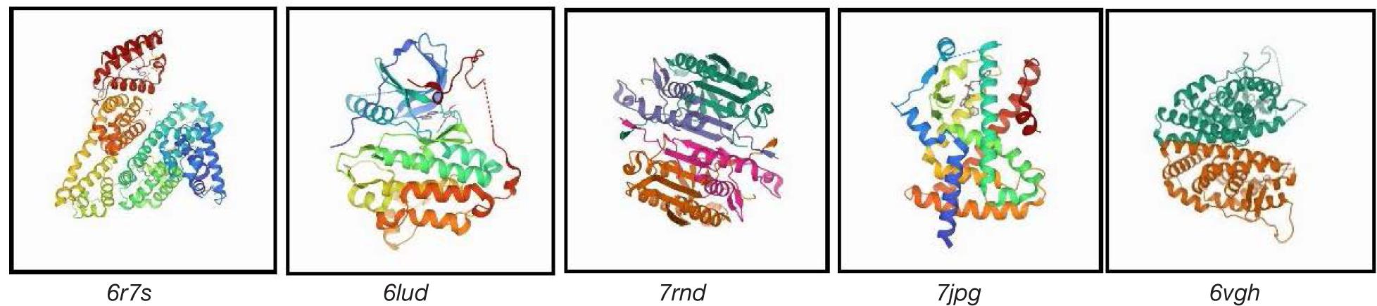 Figure 7. Three-dimensional (3D) structural diagram of the top five target proteins.