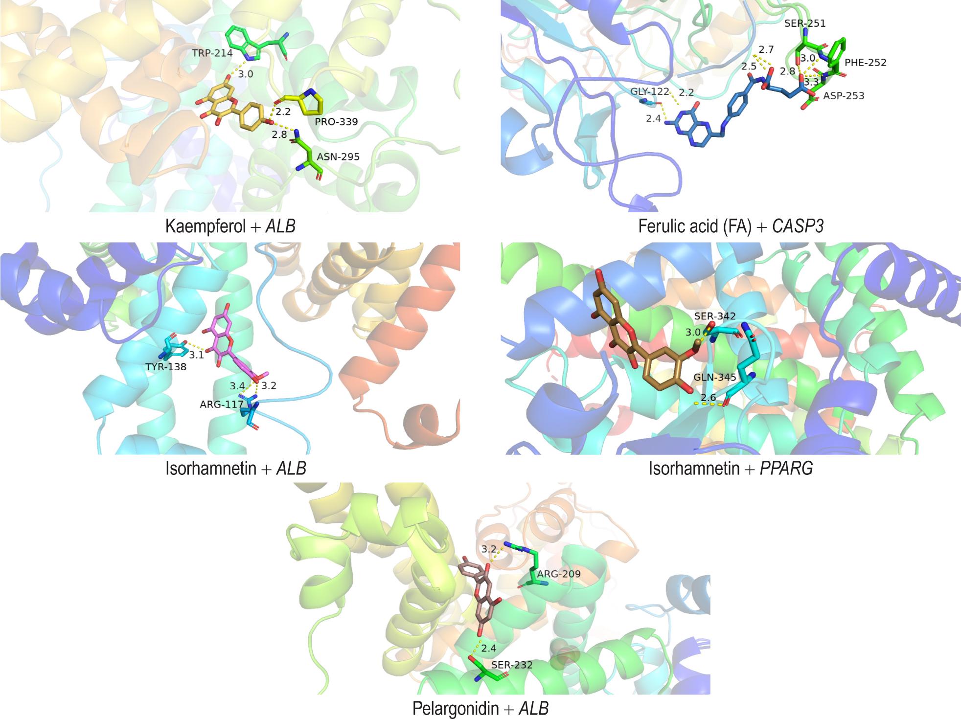 | Ferulic acid (FA) | –8.4 | –6.7 | –8.0 | –7.6 | –7.7 |