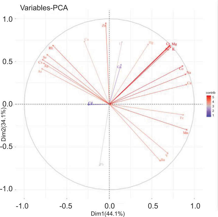 Figure 1. Principal component loading patterns of multi-element contents in wild Eriocheir sinensis samples from three water systems.