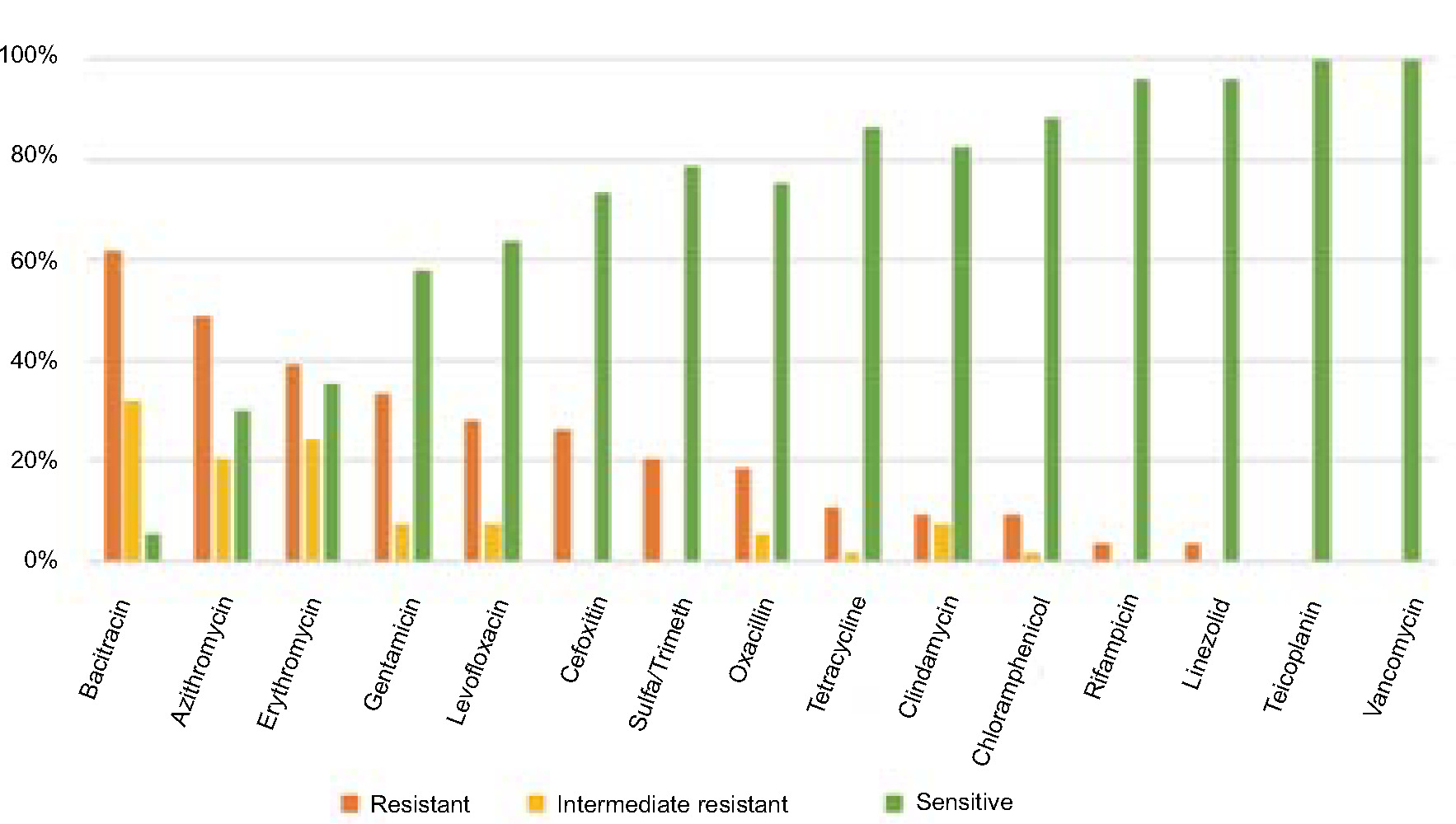 | Bacitracin | 33 (62.3) | 17 (32.1) | 3 (5.7) |